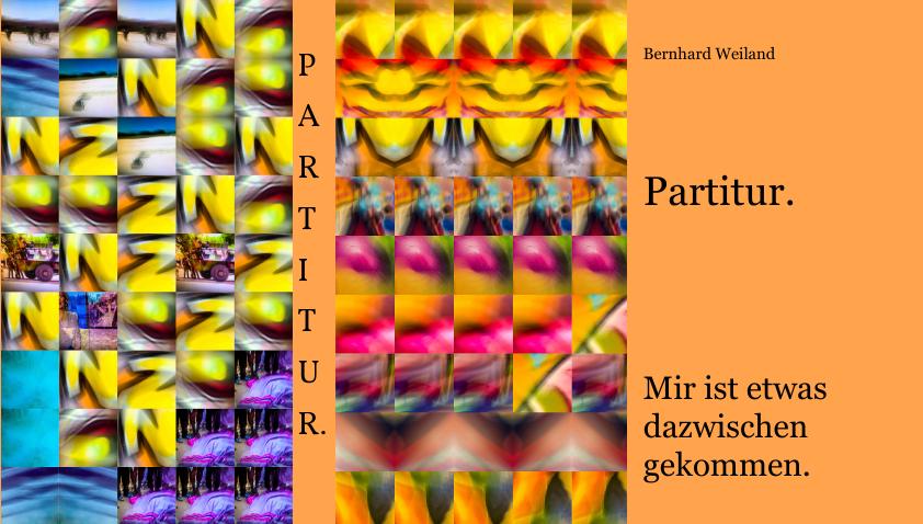“... ich war ganz versunken in meine idee, viele abstrakte farbfotografien zu einer partitur zusammenzufügen. die schwingungen der farben und formen könnten von musikerInnen in eine farbige musikalische tonwellenschwingende formensprache übersetzt werden. kunst für die kunst, unbefleckte phantasie. eine fotografische partitur. dann kamen die bilder dazwischen, die unsere gesellschaft in soziale schwingungen, bewegungen, in lange nicht mehr erfahrene wallung versetzten. die bilder drängten und zwängten sich in mein partitur-projekt, veränderten es. am ende der reihe steht die weiße partitur. werden ihre quadrate gefüllt werden? mit welchen bildern? von wem? keiner weiß es. bis dahin werden wir weiterhin mit so vielen bildern versorgt. was machen diese mit uns? ...”